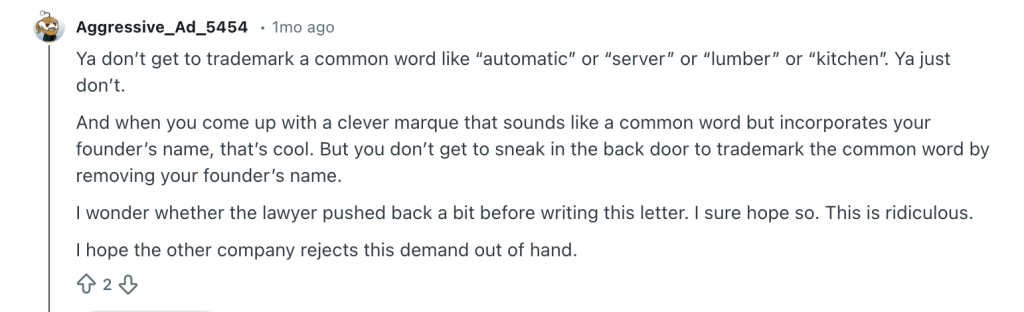 After the letters and related correspondence became public, the conversation rapidly shifted to Reddit, where reactions were even stronger than on WordPress Twitter. The consensus among commenters was that Automattic was trying to protect a word that shouldn’t be monopolized.
