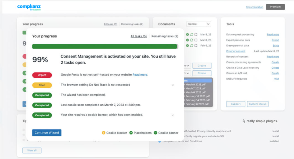 A cookie consent management plugin designed primarily for WordPress websites. The platform allows visitors to accept or reject all non-essential cookies and customize categories. Complianz stores user preferences and applies them on subsequent visits. The tool supports compliance with various legal frameworks, offers ready-made privacy and cookie policy templates, and provides basic compliance reporting.